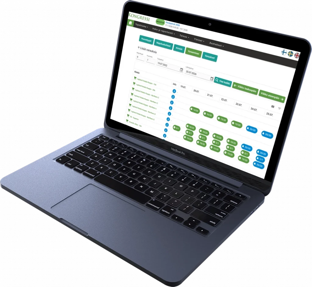Kongressi tekee majoitusvarausten hallinnasta sujuvaa ja selkeää, jolloin osallistujat saavat helposti omat majoitusvaihtoehtonsa ja järjestäjät pysyvät tilanteen tasalla reaaliajassa.