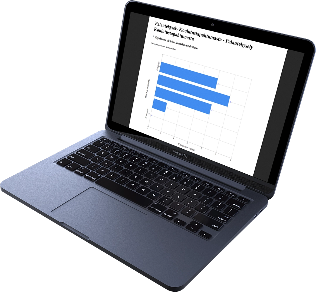 Kerätyt vastaukset tallentuvat järjestelmään, jossa niitä voidaan tarkastella ja analysoida helposti. Tulokset voidaan esittää raporteissa ja yhteenvedoissa, jotka auttavat kehittämään koulutusten sisältöä ja toteutusta.